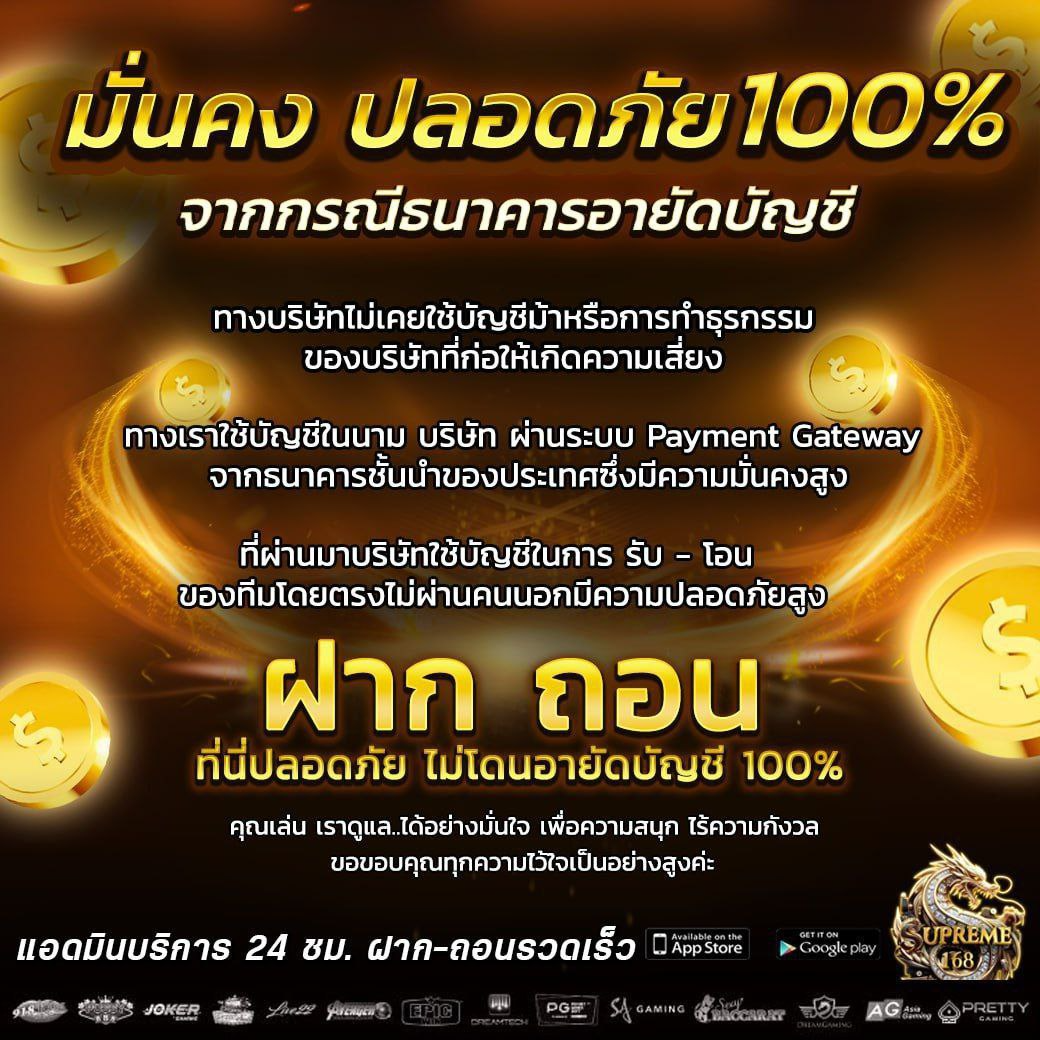 ที่ SUPREME168X มีระบบฝาก-ถอนอัตโนมัติที่รวดเร็วและปลอดภัย รองรับทุกธนาคารและวอลเล็ทยอดนิยม ทำรายการได้ตลอด 24 ชั่วโมง ไม่มีขั้นต่ำ พร้อมทีมงานคอยให้บริการตลอดเวลาผ่านทางไลน์